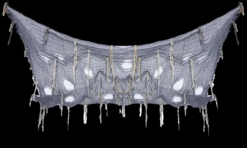 Erie creepy cloth with dangling accents. Measures 5.2 feet long X 7 feet wide. Place in your haunted house or your next party for a scary creepy look. 62 x 82 x 10″